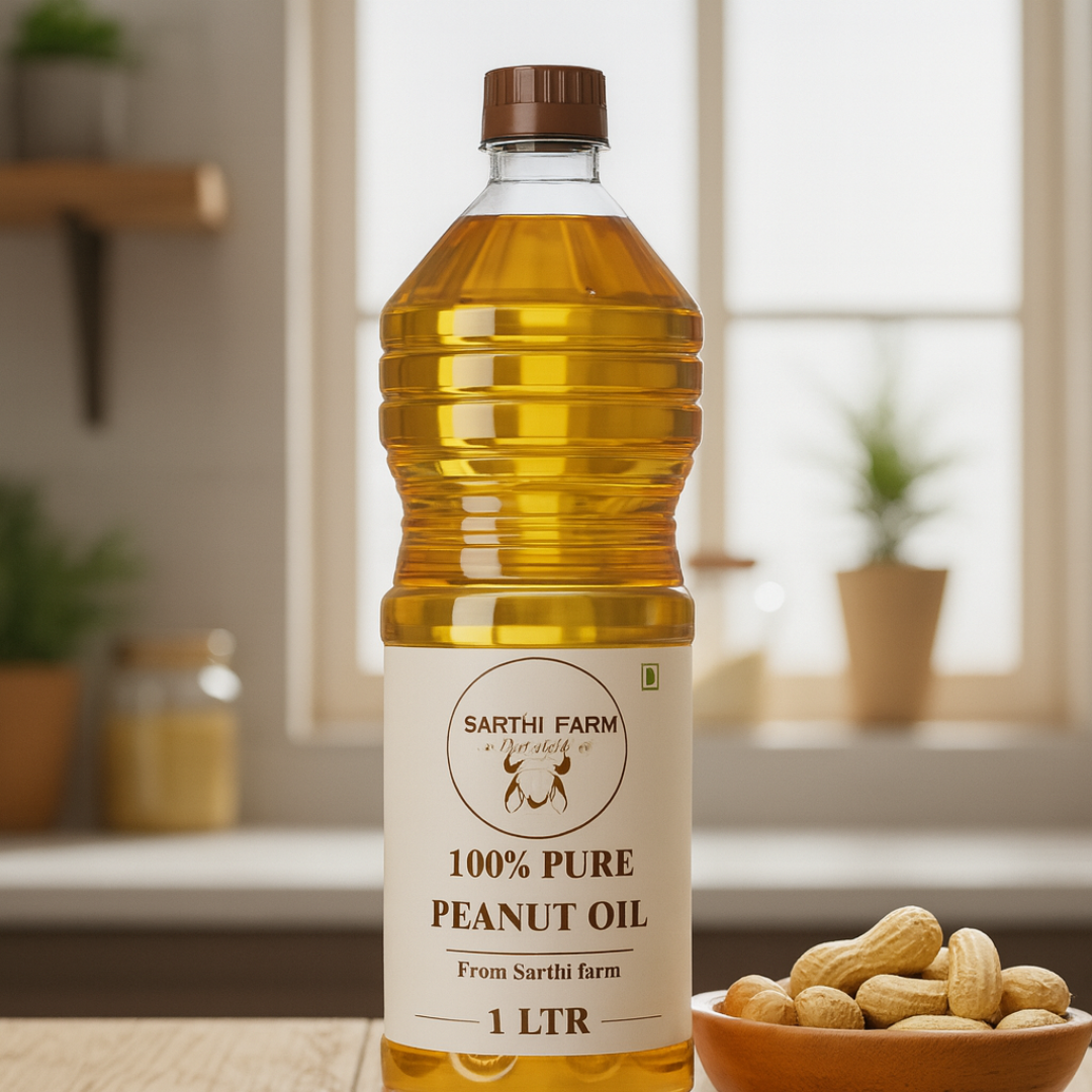 કોલ્ડ-પ્રેસ્ડ દેશી ઘાણીથી બનતું મગફળીનું તેલ શુદ્ધ અને સ્વાદિષ્ટ છે. કોઈ કેમિકલ વગર બનાવેલું હોવાથી આરોગ્ય માટે અત્યંત લાભકારી. રસોઈમાં તેનો ઉપયોગ ભોજનને સ્વાદિષ્ટ બનાવે છે અને હૃદય માટે પણ સારું છે. કુદરતી પૌષ્ટિકતાથી ભરપૂર આ તેલ અમારી સૌથી વિશ્વસનીય પ્રોડક્ટ્સમાંની એક છે.
