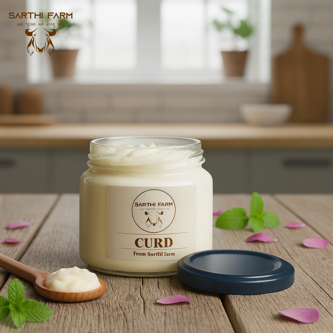 સારથી ફાર્મ નું દહીં તાજા ગાયના દૂધમાંથી બનતું હોવાથી ગાઢ, સ્વાદિષ્ટ અને પૌષ્ટિક છે. ભોજન સાથે ખાવા માટે, ઠંડક મેળવવા માટે અથવા અનેક ઘરેલુ વાનગીઓમાં ઉપયોગી. પ્રોબાયોટિક ગુણોથી સમૃદ્ધ આ દહીં પાચન માટે ઉત્તમ છે અને શરીરને તાજગી આપે છે. દૈનિક જીવનમાં દહીં આરોગ્યનું ખજાનો છે.