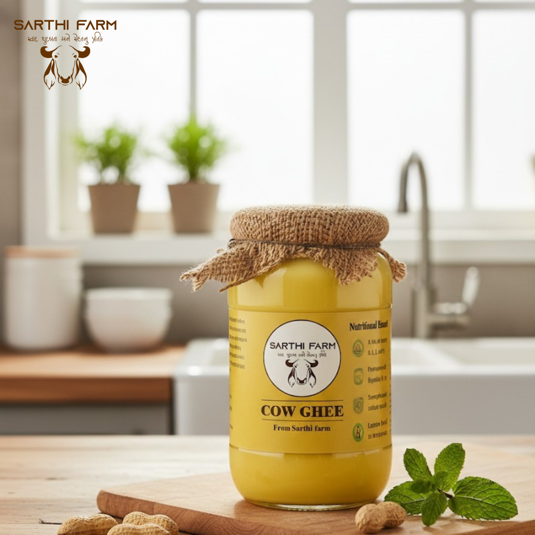 અમારા ફાર્મનું દેશી ગાયનું ઘી પરંપરાગત પદ્ધતિથી બનેલું છે. સુગંધિત અને સ્વાદિષ્ટ આ ઘી રોજિંદા ભોજનમાં વિશેષ સ્વાદ ઉમેરે છે. આરોગ્ય માટે ઉત્તમ ઘી દૈનિક શક્તિ વધારવામાં, પાચન સુધારવામાં અને માનસિક તંદુરસ્તીમાં મદદરૂપ છે. શુદ્ધ અને અસલી ગાયનું ઘી એજ અમારી ઓળખ છે.